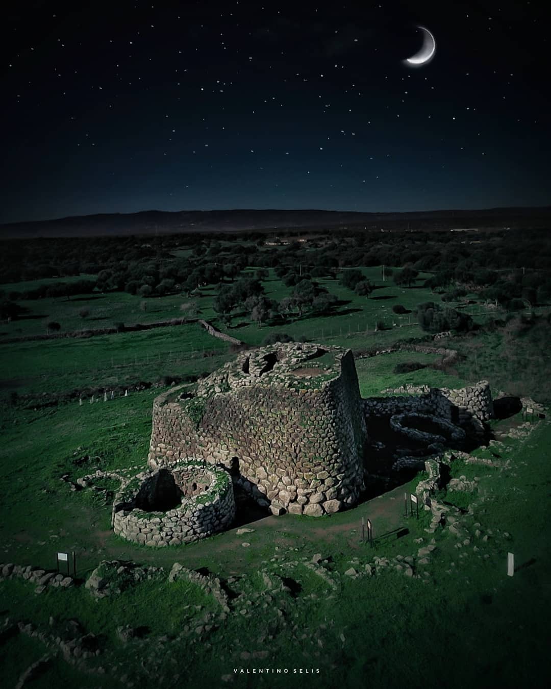 Il complesso, interamente costruito con grossi blocchi di basalto, è costituito da un nuraghe trilobato, risalente al Bronzo medio (XV-XIV secolo a.C.), un antemurale e resti di un villaggio di capanne circolari, realizzati tra Bronzo recente ed età Del Ferro (XIII-IX a.C.). All’ingresso, scoprirai che l’enorme massa compatta – segreto dello straordinario stato di conservazione – contiene anche vani spaziosi. Non il cortile scoperto, però, caratteristico della gran parte dei nuraghi complessi, forse sostituito nelle funzionalità da spazi esterni scoperti. Accederai attraverso un ingresso principale, sopraelevato rispetto alla campagna, e da un corridoio rettilineo raggiungerai l’originaria torre centrale troncoconica (mastio) e le due torri laterali. Mentre quella posteriore è accessibile da un ingresso secondario. Avanzerai attraverso i chiaroscuri del corridoio, respirerai l’odore delle pietre coperte dal muschio, rivivrai le sensazioni della mitica età nuragica” (Sardegna Turismo).