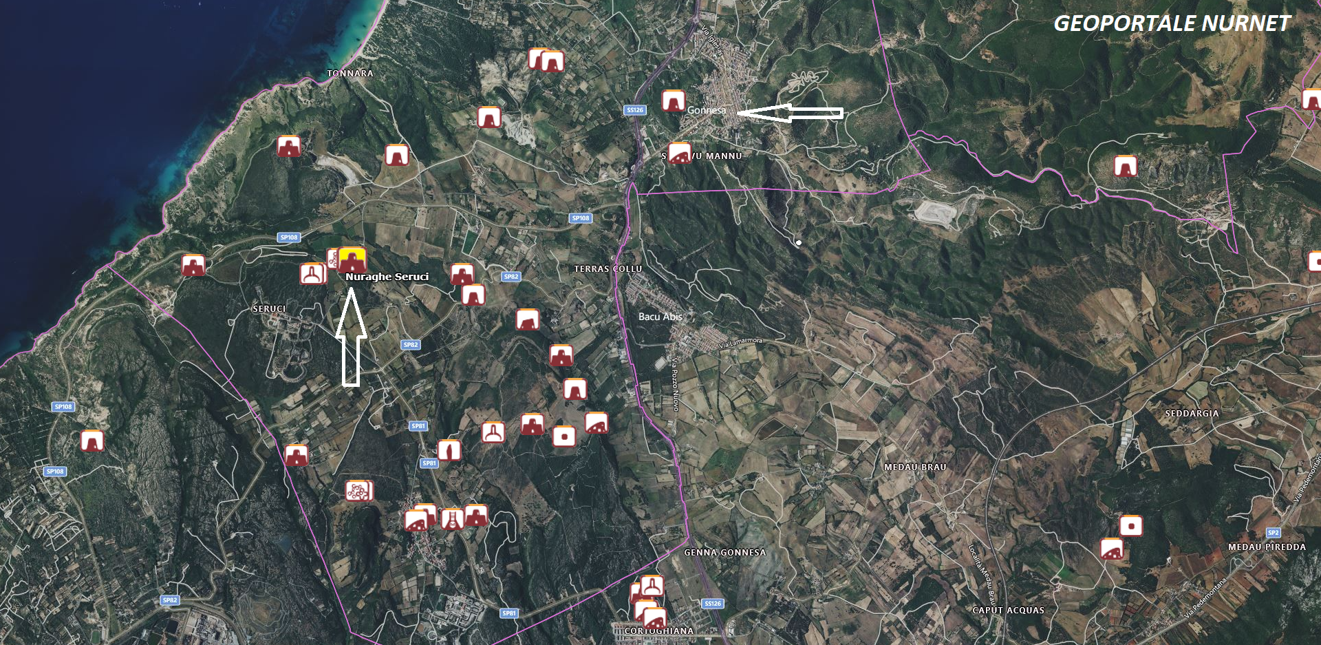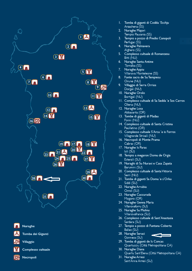 “Il complesso di Seruci, che si estende per oltre sei ettari, è costituito da un nuraghe complesso, un antemurale, un esteso villaggio di capanne e almeno una tomba di giganti, ubicata sulla collina prospiciente.