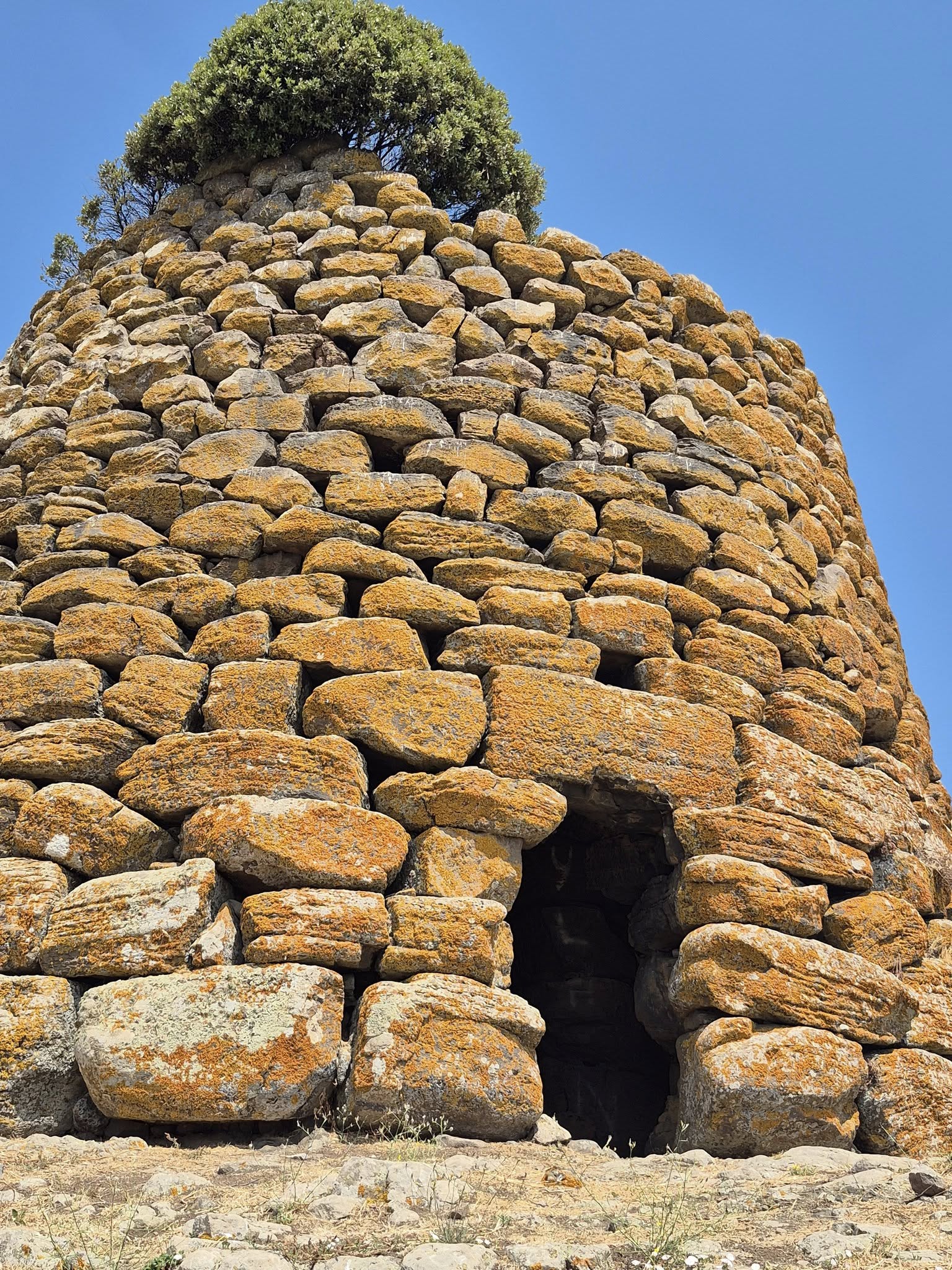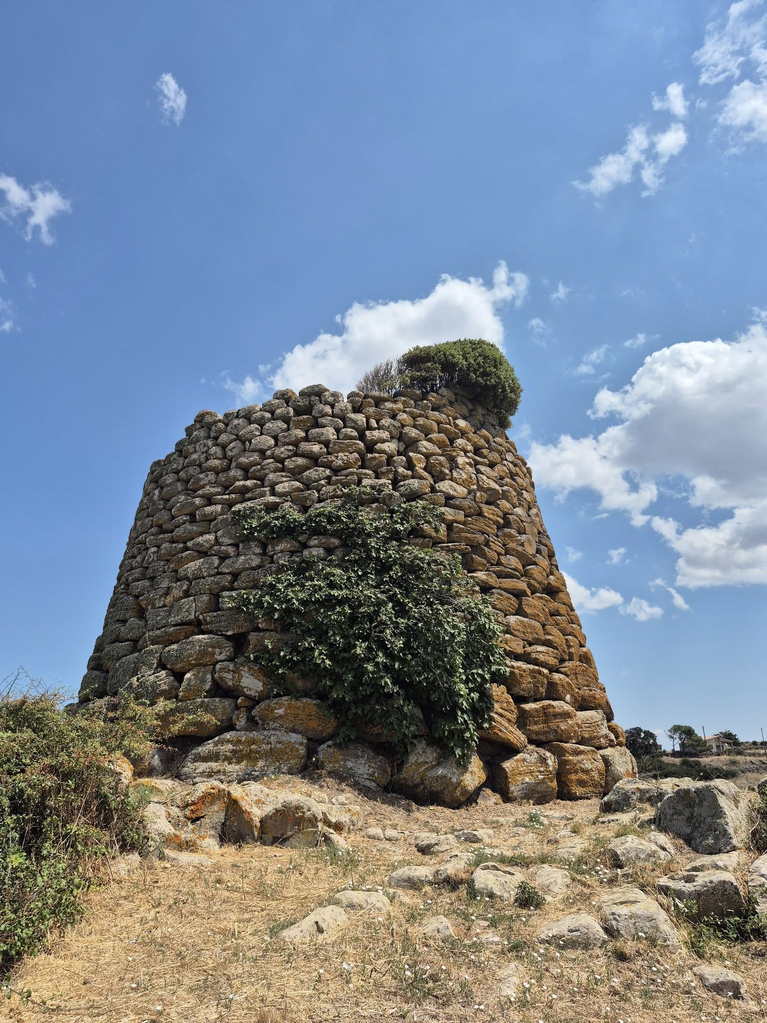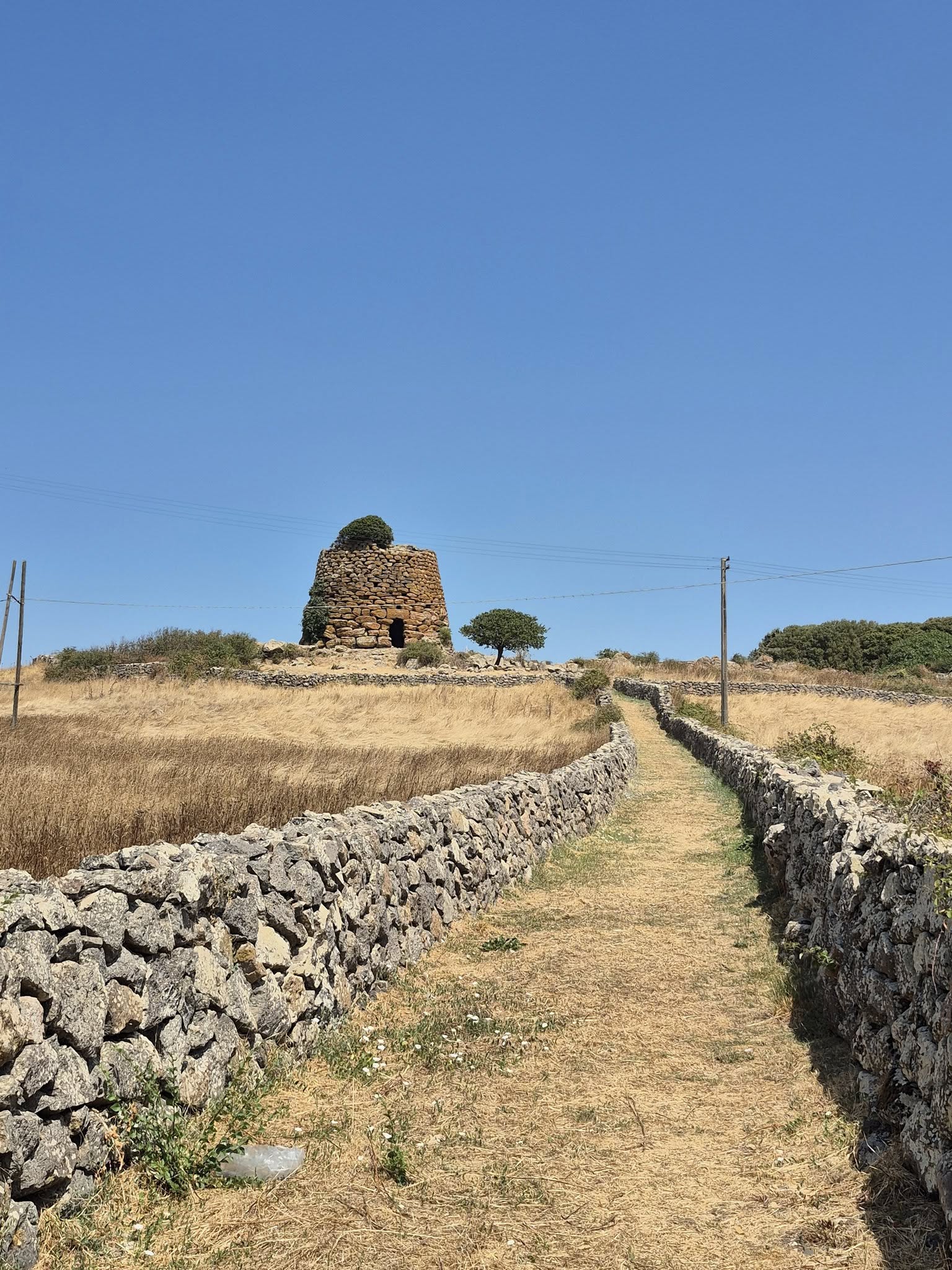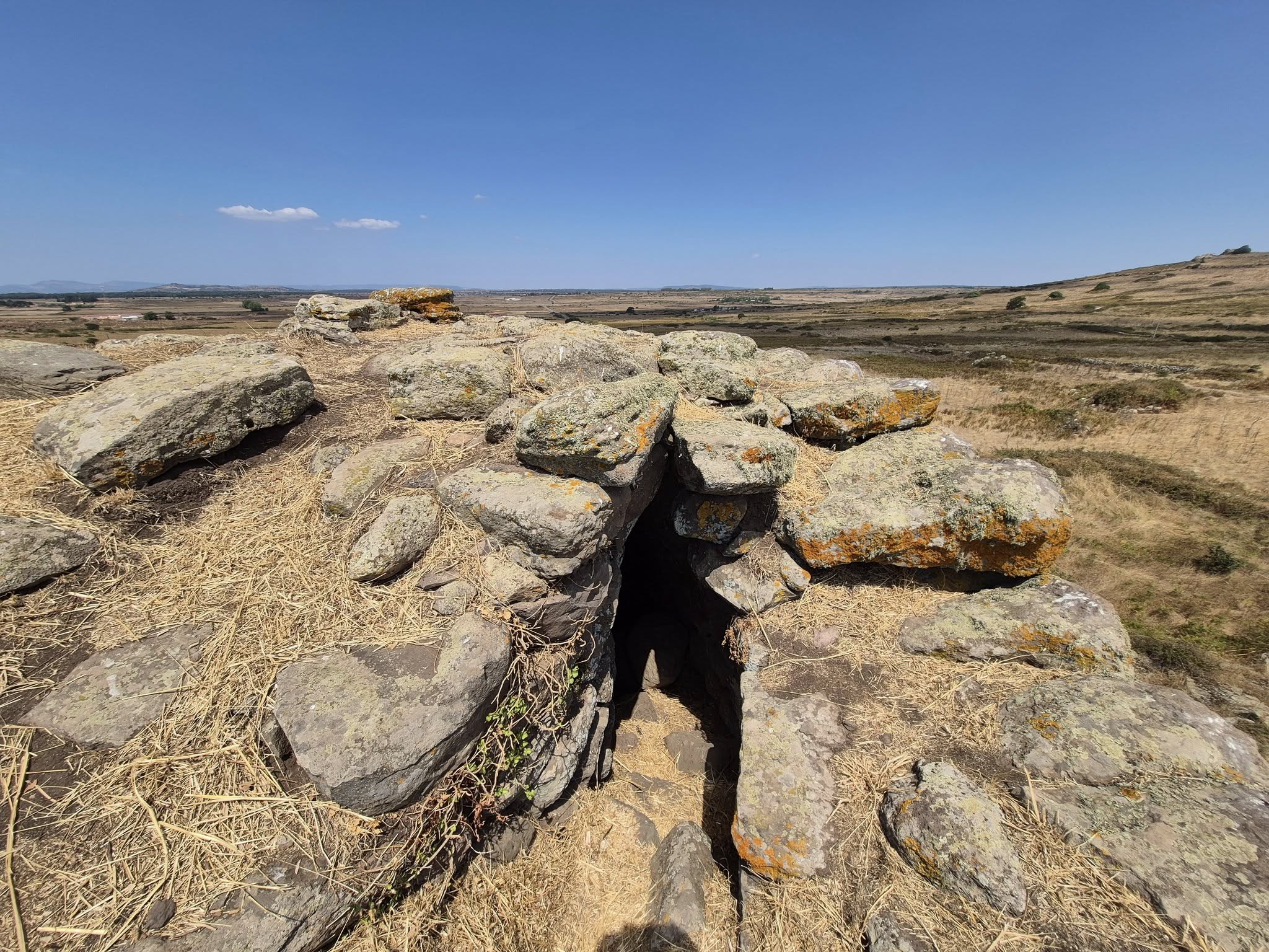 La entrada, tronco-ogival, está orientada al sureste y coronada por un robusto dintel de dos metros de longitud. Encima hay una pequeña ventana que deja pasar el aire y la luz. Más allá de la entrada, se abre a la izquierda una escalera de caracol en el sentido de las agujas del reloj que conduce al piso superior. A poca distancia del nuraghe hay una domus de janas.