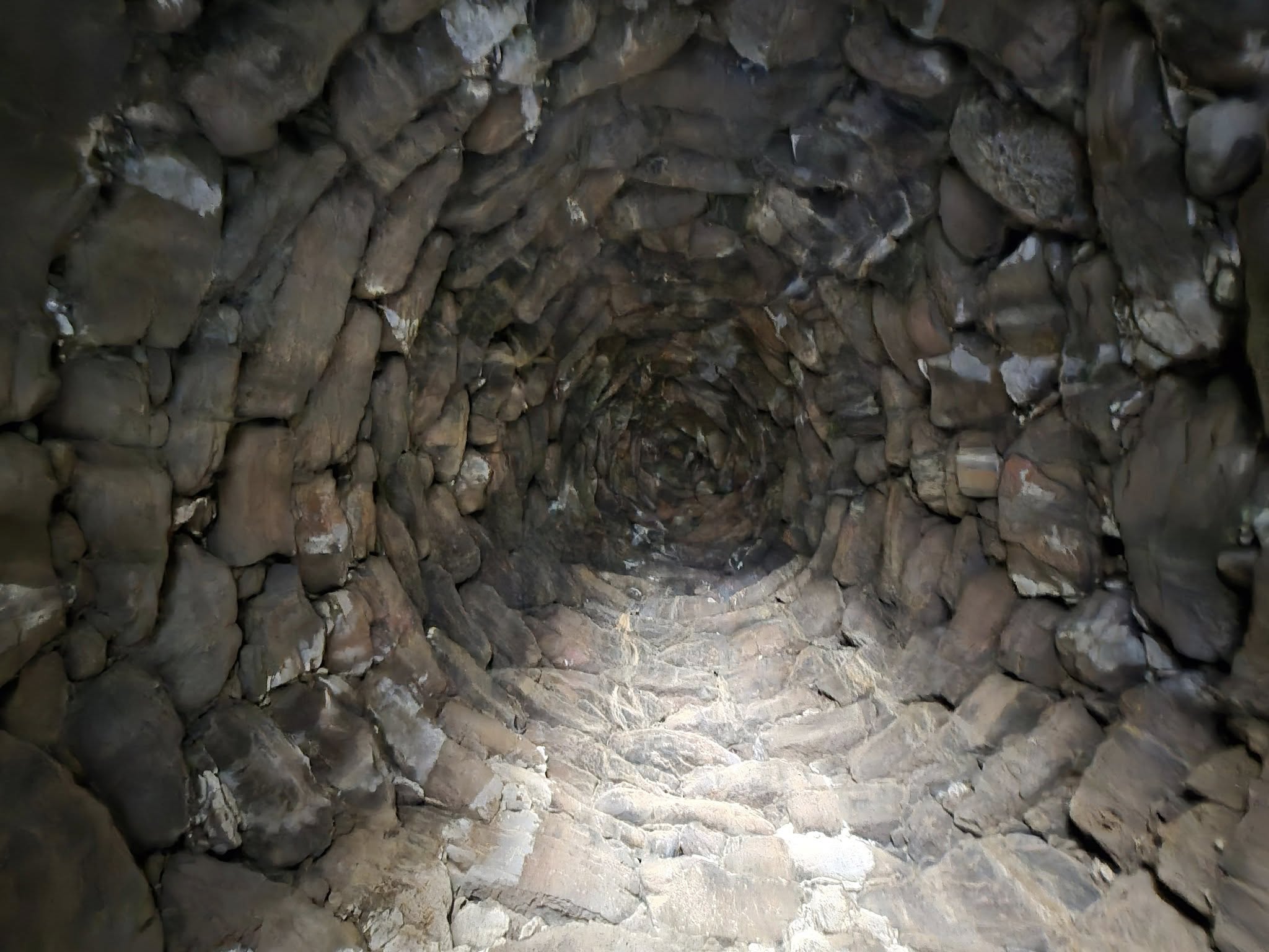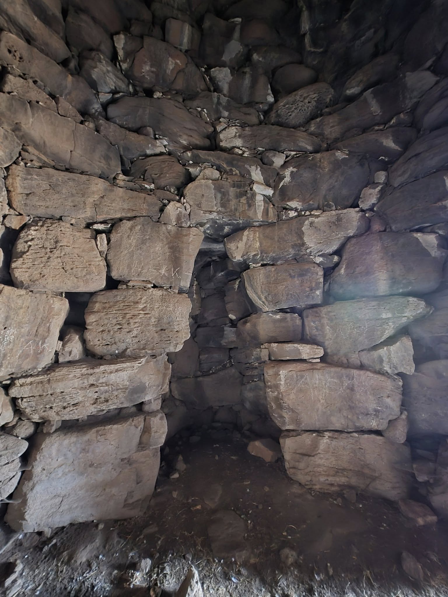 La torre tiene un diámetro de casi 15 m y está construida, en las hileras inferiores, con grandes bloques, mientras que en la parte superior tiene cantos rodados más pequeños, cuidadosamente rematados.