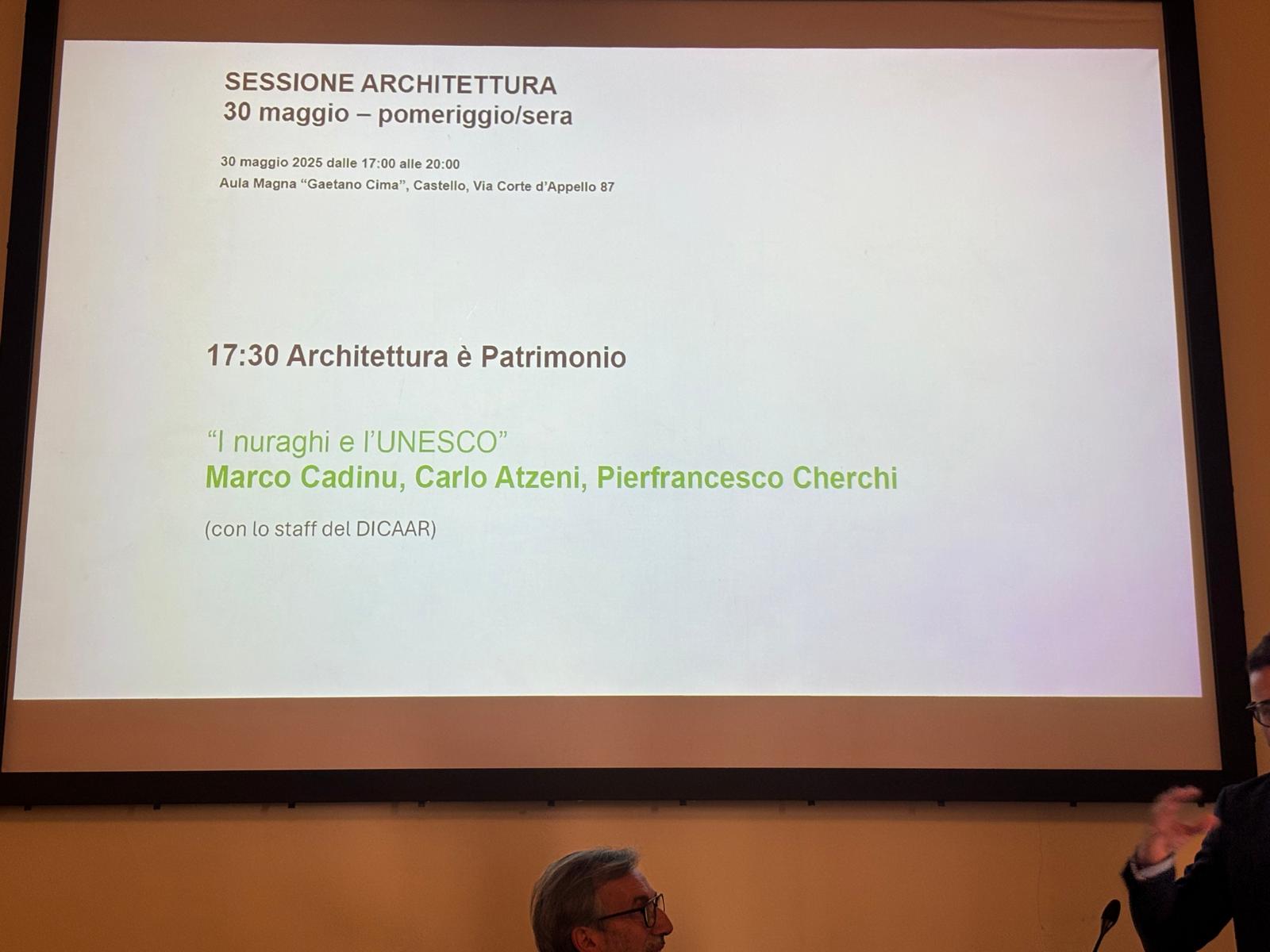 Inserito nella sessione “Architettura è patrimonio”, il panel dal titolo “I nuraghi e l’UNESCO” ha visto la partecipazione di Marco Cadinu, Carlo Atzeni, Pierfrancesco Cherchi. Tra gli ospiti la Sovrintendente Monica Stocchino, Gianluca Cadeddu, Marco Naseddu (Centro Regionale Programmazione), il socio di Sardegna verso l’Unesco ed ex Direttore DICAAR Antonello Sanna e Raffaele Paci (CRENoS).