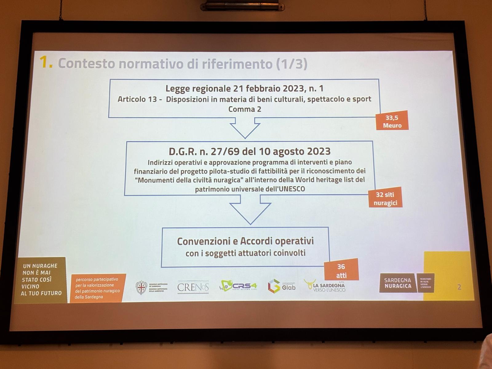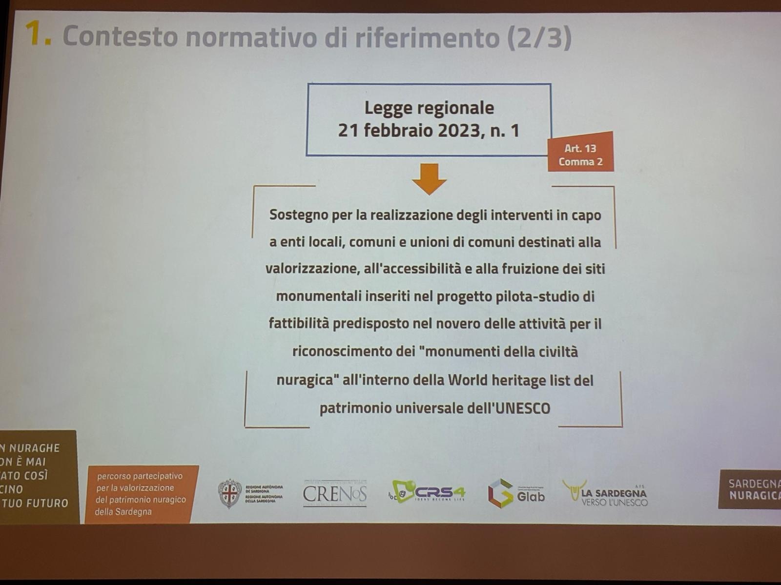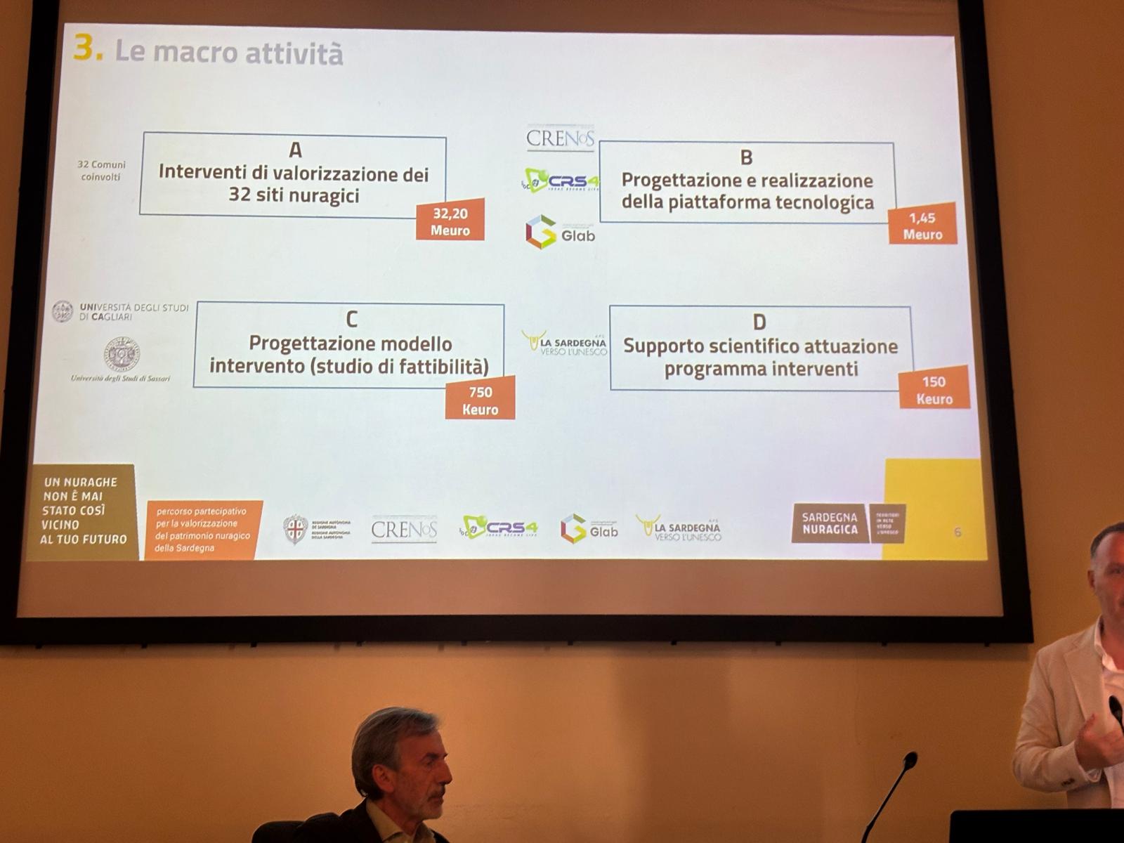 Nel corso del dibattito è stato anche illustrato il progetto “Sardegna nuragica” che, partendo dalla candidatura dei 32 monumenti nuragici a patrimonio universale dell’Unesco, punta alla creazione di una rete di offerta culturale per trasformare i 32 siti inseriti nella Tentative list in un sistema integrato con le altre risorse e i servizi dei territori coinvolti, unendo così turismo, formazione, imprenditorialità e ricerca.