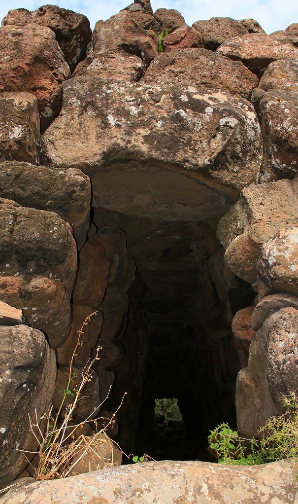 “…edifici che differiscono in maniera significativa dai nuraghi classici: di aspetto più tozzo e di planimetria generalmente irregolare, al loro interno non ospitano la grande camera circolare tipica del nuraghe, ma uno o più corridoi e qualche rara celletta coperta a falsa-volta”.