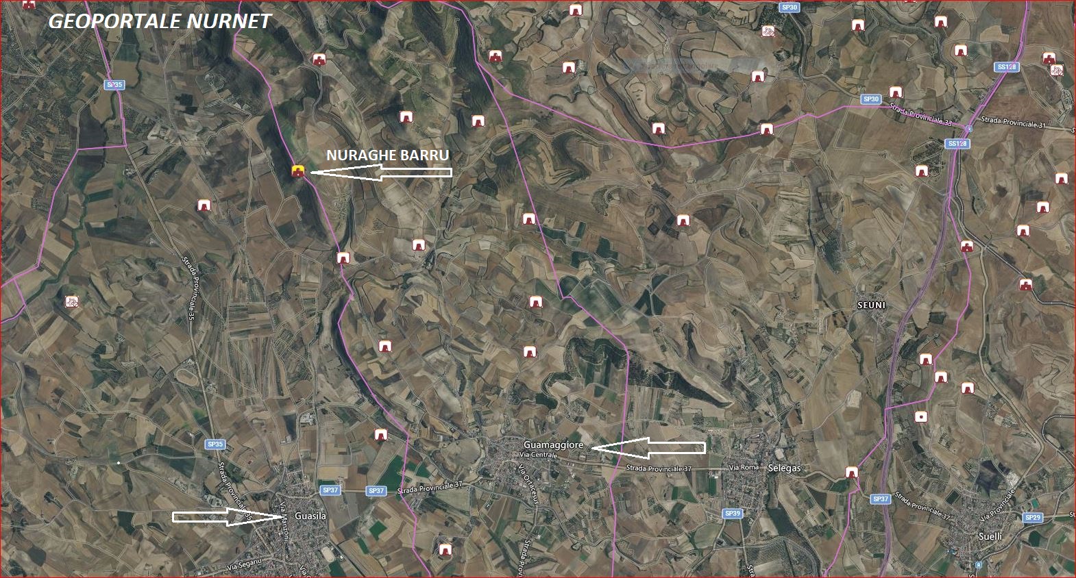 Il nuraghe Barru domina dall’alto di un rilievo calcareo la piana sottostante, nel cuore della Trexenta. La visuale dal monumento spazia dai due paesi confinanti fino ai monti di Segariu e al centro abitato di Villamar. Le campagne di scavi hanno portato alla luce una struttura complessa, formata da un mastio centrale (orientato in direzione nord) e da due torri disposte attorno a un cortile, collegate tramite cortine murarie.