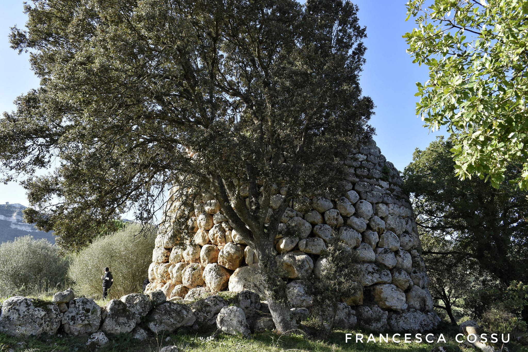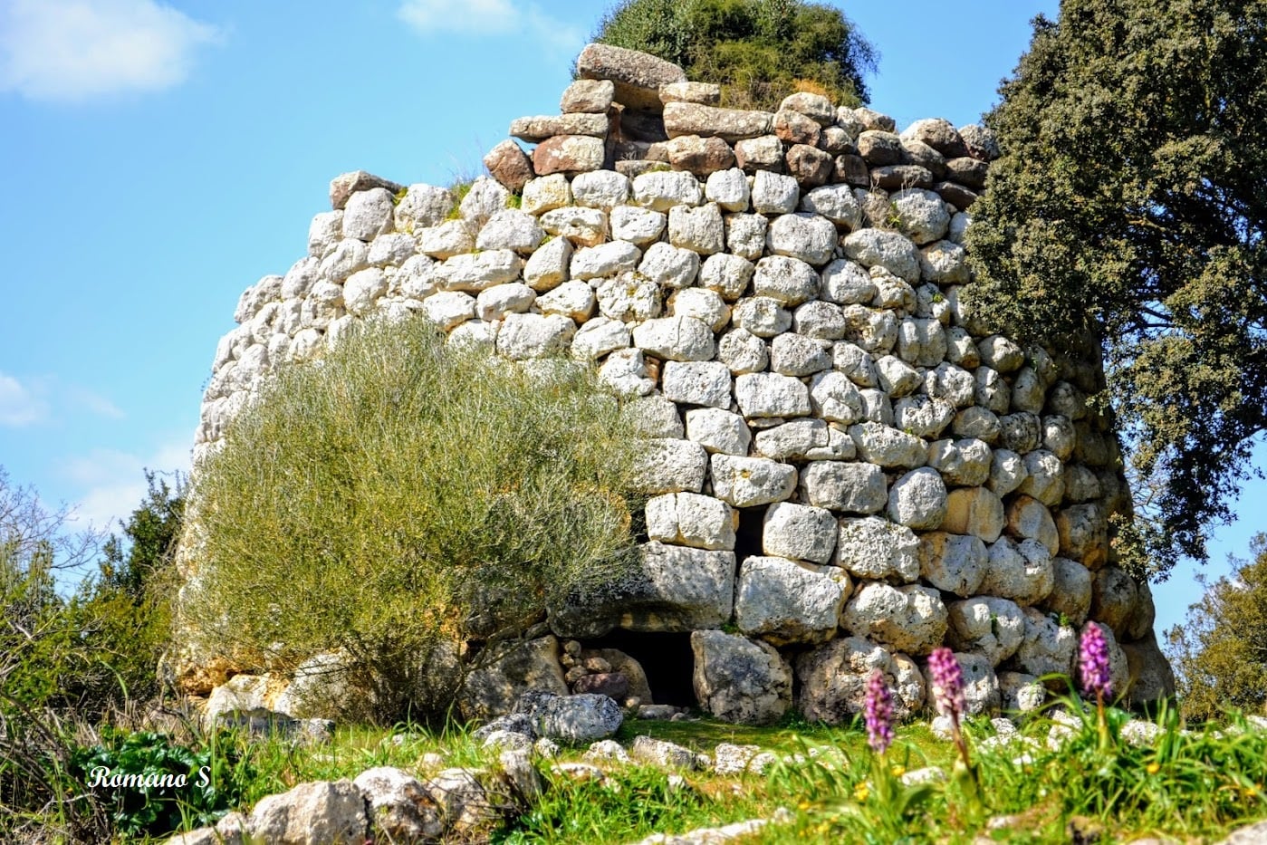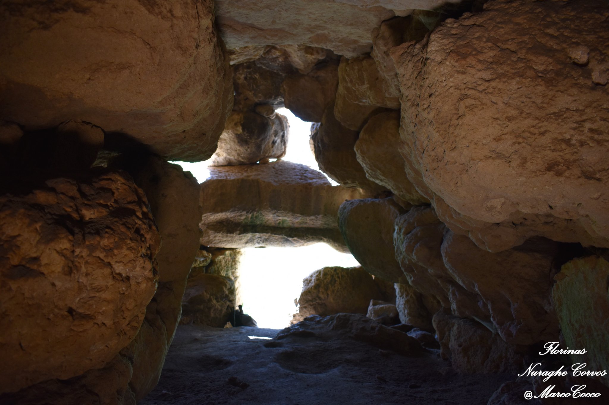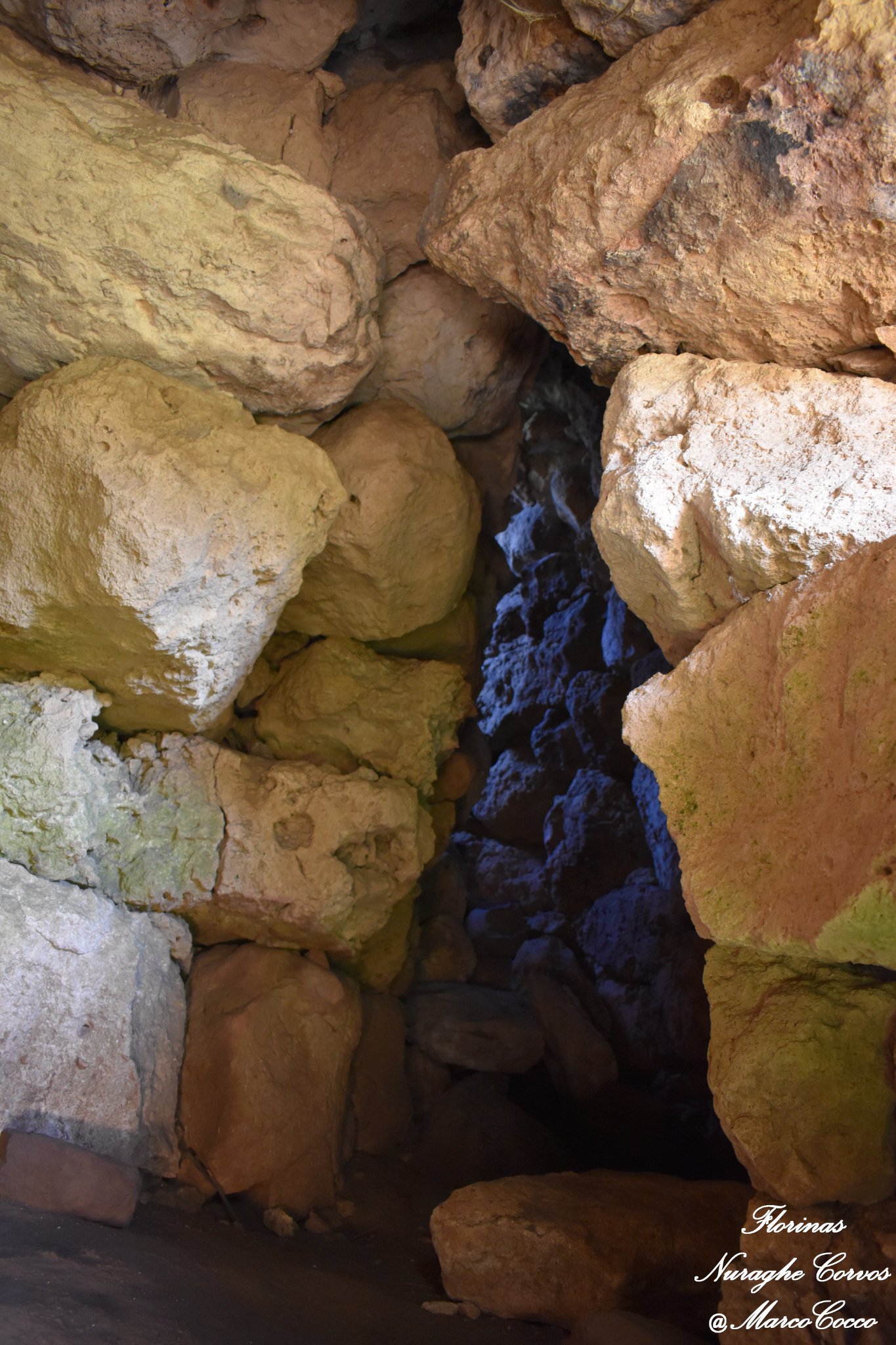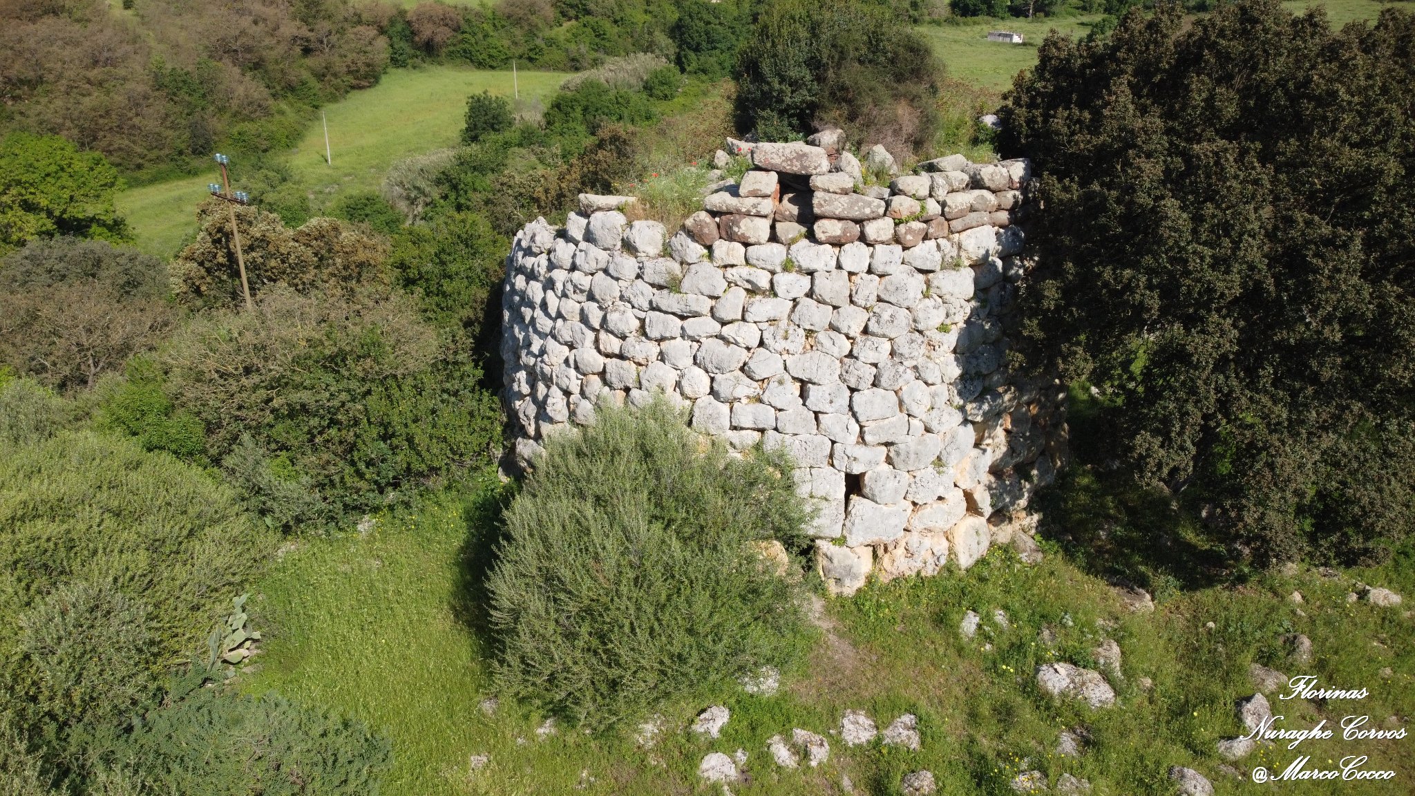 Al primo sguardo sembra un monotorre, in realtà la sua struttura complessa è appena visibile, inoltre fu ‘ristrutturato’ già in età protostorica, usando un materiale diverso. Il nuraghe Corvos si erge solitario nelle campagne a sud-ovest di Florinas, distante circa dieci chilometri dal centro abitato. Si conserva in buone condizioni la torre centrale, alta otto metri e con diametro di 13 e mezzo, che osserverai nella sua duplice colorazione.Alla base presenta grossi blocchi di calcare appena sbozzati, mentre in occasione del restauro furono usati conci di trachite scura ben lavorati. Non è chiaro se l’intervento sia stato conseguenza di un crollo del livello superiore o della scelta di costruirlo ex novo in un secondo momento. La prima ipotesi sembrerebbe supportata dal fatto che nel lato nord-est ci sono tracce di riparazioni anche nella muratura calcarea, quindi probabilmente l’eventuale cedimento avvenne su questo lato.