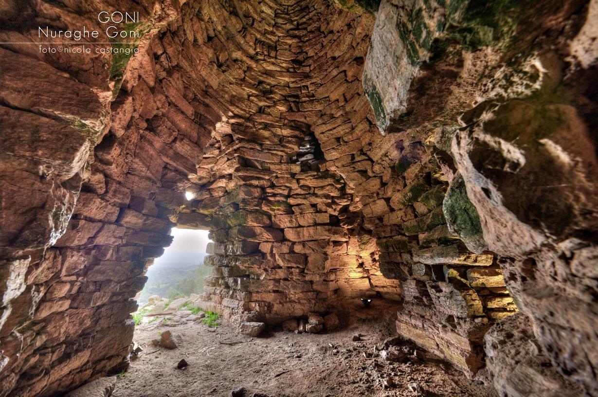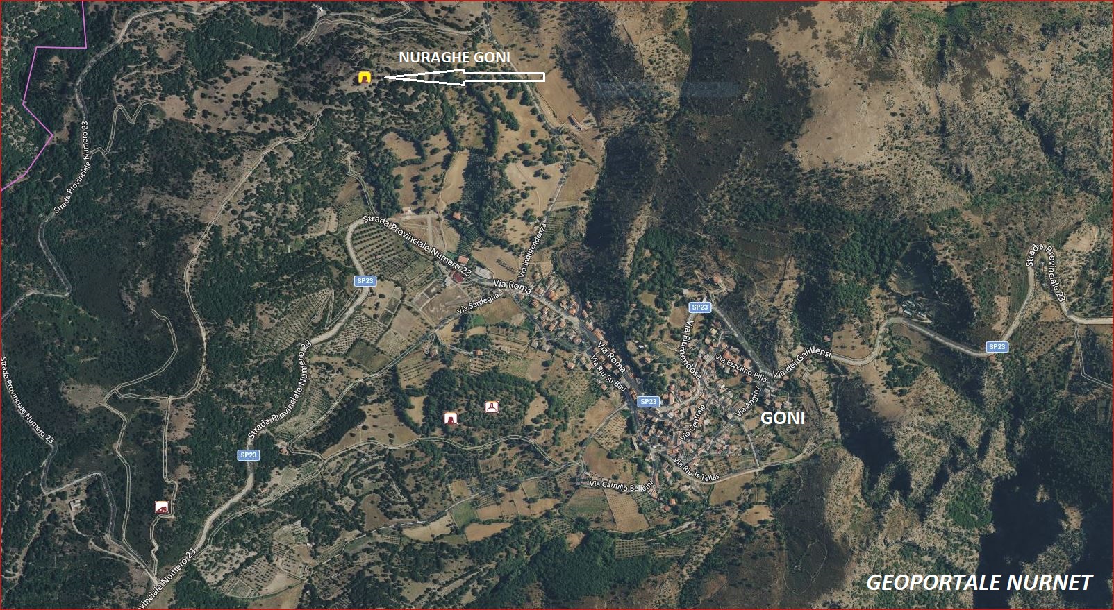 Il monumento si trova su uno stretto pianoro dominante la vallata nella quale si trova il paese di Goni.