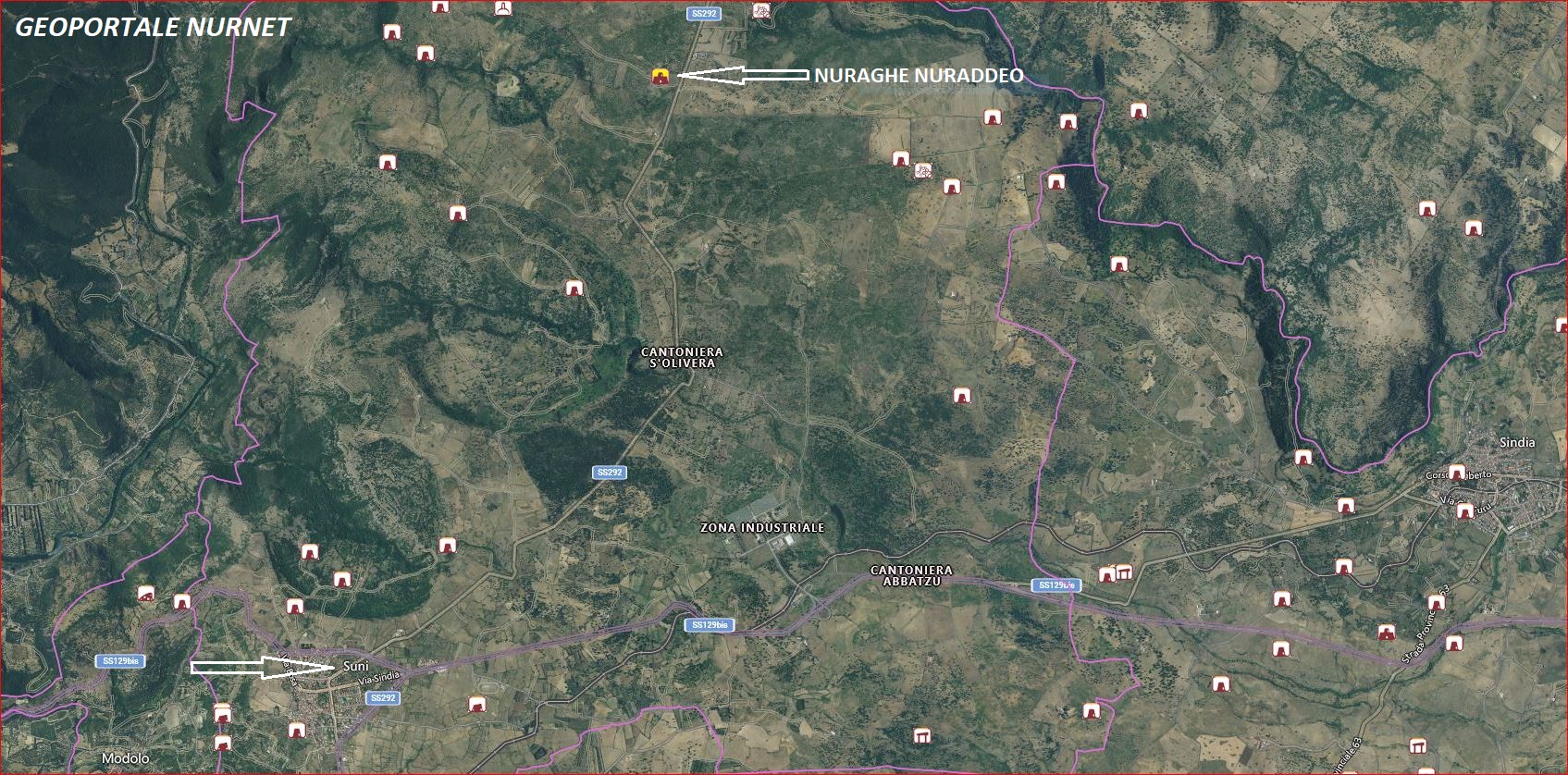 Si esce da Suni in direzione Padria attraverso la S.S. 292. Al km 65 si svolta a sinistra per la via d’accesso all’area archeologica”.
