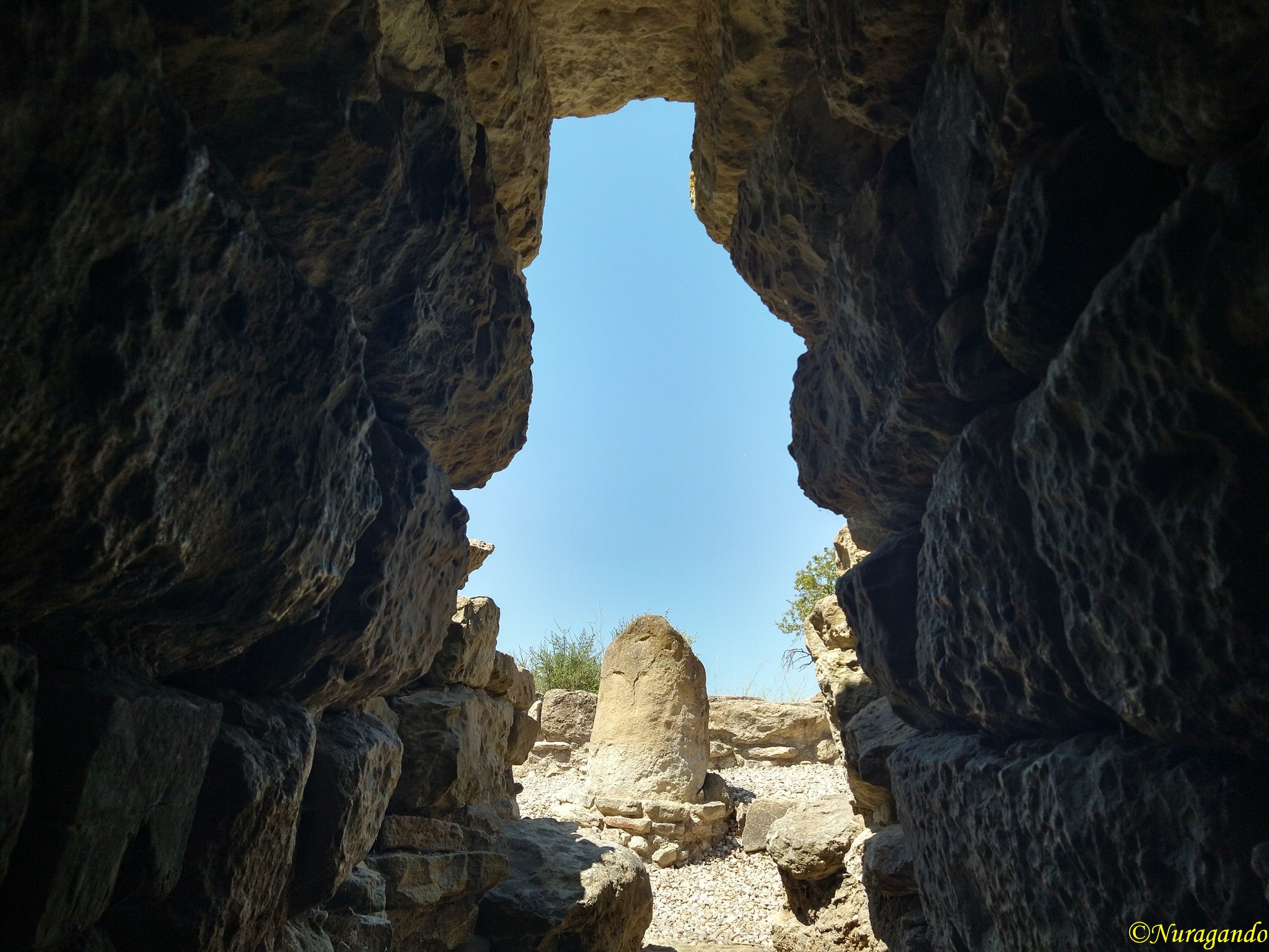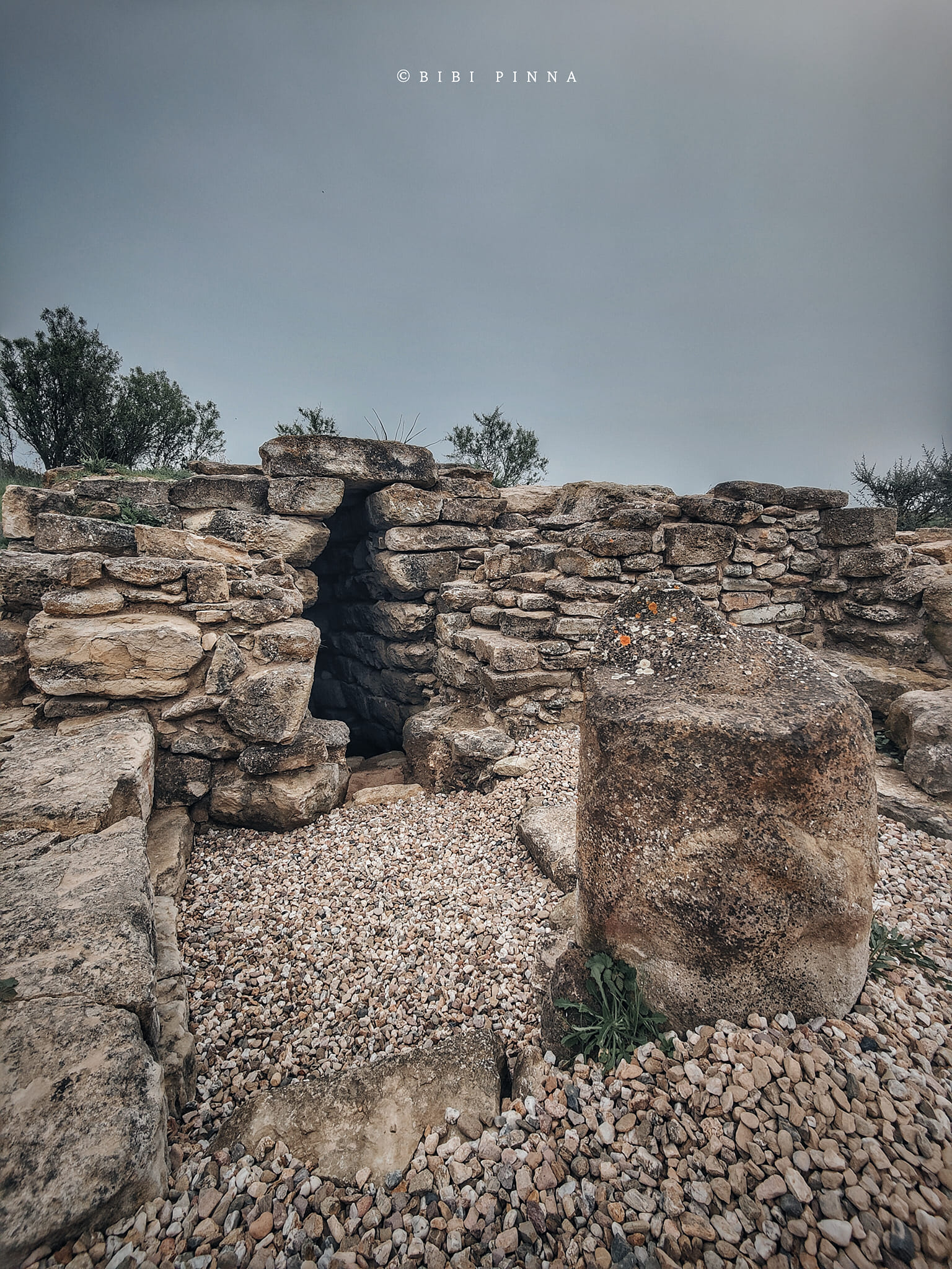 Gli scavi hanno dimostrato che l’area fu frequentata a lungo e intensamente, a scopi cultuali e funerari. Il primo impianto si fa risalire al Bronzo recente e finale, tra XIII e XI secolo a.C., ed è composto da un atrio rettangolare, lastricato, dal quale, attraverso un ingresso di forma trapezoidale, si accede al vano scala. Da qui, una scalinata di circa 4 metri ti porterà alla camera, parzialmente ricavata nella roccia, a pianta sub-circolare con copertura a tholos.