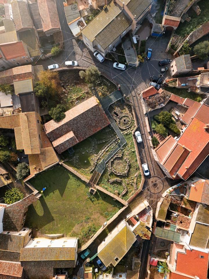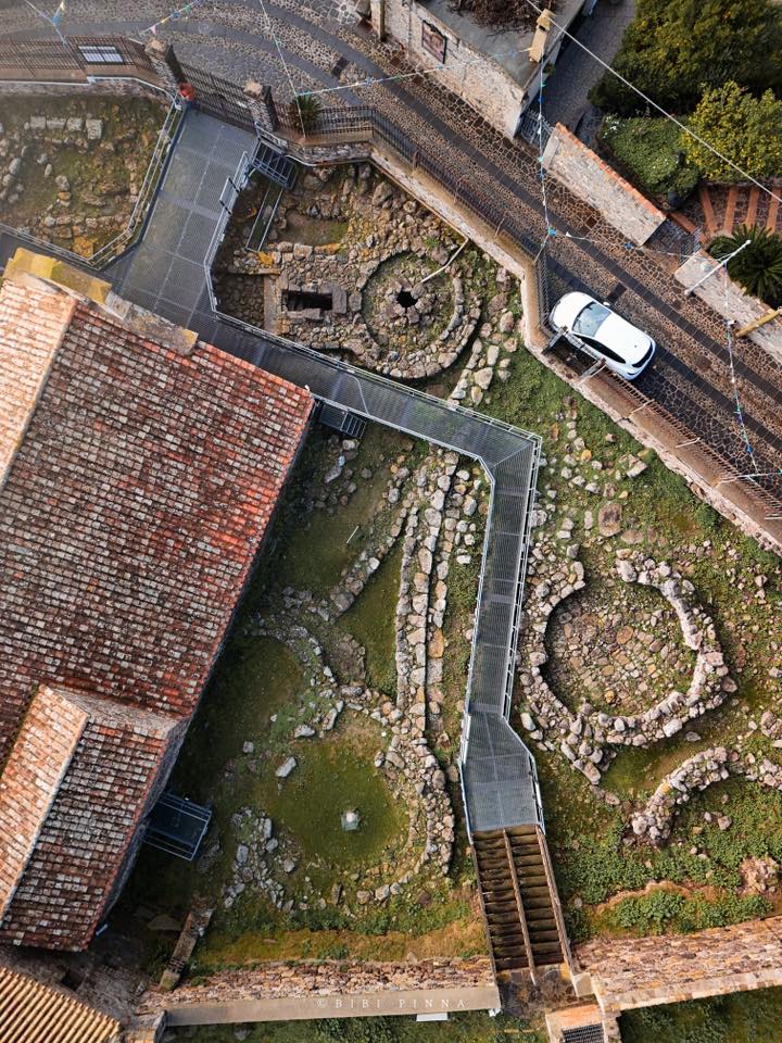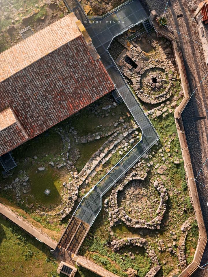 Il recinto ingloba un’ampia capanna circolare, forse la sala del Consiglio, con un sedile che corre lungo il muro perimetrale. Qui sono stati rinvenuti, oltre a elementi di arredo, tra cui spicca un altare di pietra modellato a foggia di torre nuragica, numerosi reperti unici nel contesto nuragico: matrici di fusione di terracotta, lingotti in piombo e un orcio contenente pregevoli manufatti in bronzo. Li potrai ammirare nel museo archeologico cittadino Villa Abbas.”