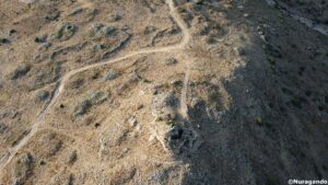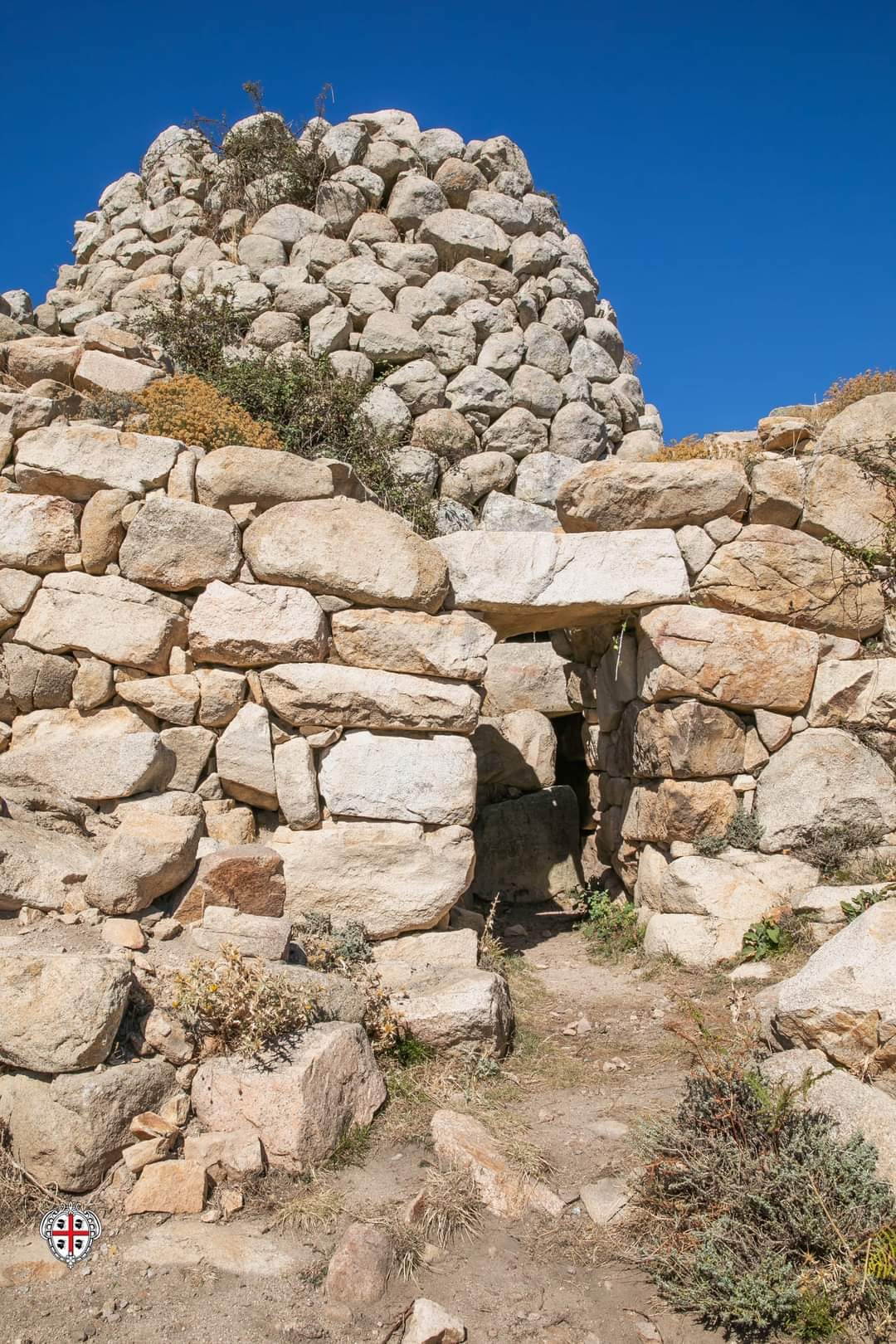 Il nuraghe ha un impianto trilobato, il mastio si conserva in altezza per circa 8 metri e mezzo e la camera principale presenta ancora la copertura a tholos, mentre a sinistra dell’ingresso individuerai la scala che conduceva al vano superiore, poi crollato.