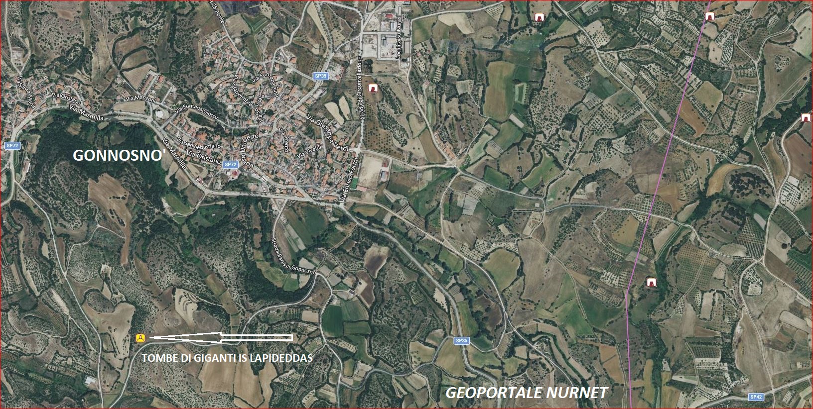 Nell’area de Is Lapideddas, a ovest del paese di Gonnosnò, sono state individuate quattro tombe dei giganti, poste a poca distanza l’una dall’altra e in diverso stato di conservazione. Sono costruite con blocchi di calcare locale e misurano poco più di 10 metri di lunghezza, tranne una, di dimensioni assai ridotte, realizzata con pietrame medio e minuto legato da malta di fango.